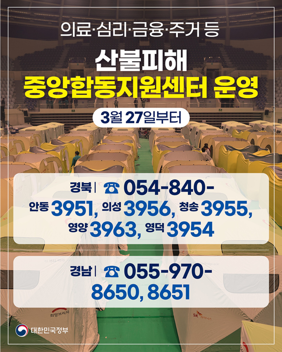 그래서 오늘은 “경북 산불 피해 이재민 지원”을 주제로, 정부와 지방자치단체가 함께 운영 중인 중앙합동지원센터에서 받을 수 있는 지원 혜택을 알기 쉽게 정리해드립니다.